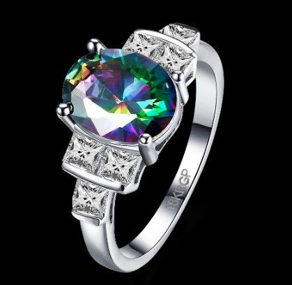 925 Silver Ring Oval Cut Ruby Emerald Blue Sapphire — ₹549.48 (Save 54%!)